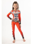 Der Gegenstand des Verkaufs ist ein Gymnastikanzug. Unser Kleidungsstück hat einen sehr taillierten Schnitt, der für körperlich aktive Kinder geeignet ist. Prüfen Sie unsere Größentabelle, und wenn Sie Zweifel haben, ob eine Größe passt - nehmen Sie eine größere!
