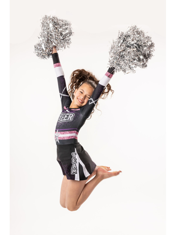 Sukienka taneczna z długim rękawem i wszytymi spodenkami stanie się idealnym uzupełnieniem choreografii oraz niezwykle wygodnym strojem do ćwiczeń. Starannie wykonana, uszyty z wysokojakościowych tkanin produkcji polskiej. Dedykowana sportom z rodziny cheerleader i mażoretek - dzięki wszytym spodenkom zapewni komfort podczas treningu i występów.